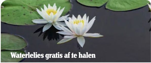 Omdat mijn vijver een dagje ouder wordt (en ik ook!) moet ik hem tot mijn grote spijt laten dempen. De meeste koi karpers hebben gelukkig een plekje in een andere vijver gevonden. Nu heb ik nog een kleine en een grote mand met wit bloeiende waterlelies over. Kan ik daar misschien iemand blij mee maken? Ook een goed werkende vijverpomp en UV lamp zijn gratis af te halen.