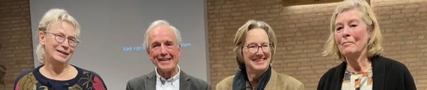 Op de foto van links naar rechts: Liesbeth van Steijn (secretaris), Maarten van Poll (penningmeester), Tjaaktje de Jonge (voorzitter) en Carla Ruigrok (bestuurslid).