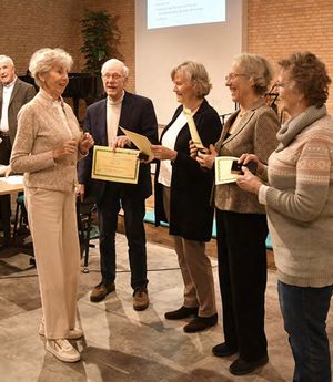 Ook Inge werd gehuldigd: namens het hoofdbestuur reikte Mercedes Docter een erespeldje en een speciale oorkonde uit voor al het vrijwilligerswerk dat Inge heeft gedaan voor de vereniging.